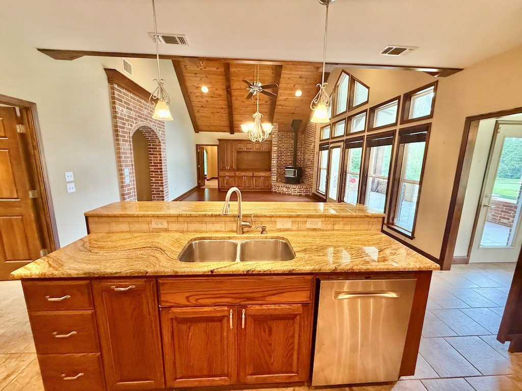Double Pane Windows, Ceiling Fan(s), Vaulted Ceilings, Island Kitchen, Master - Lower Level, Pantry, Blinds