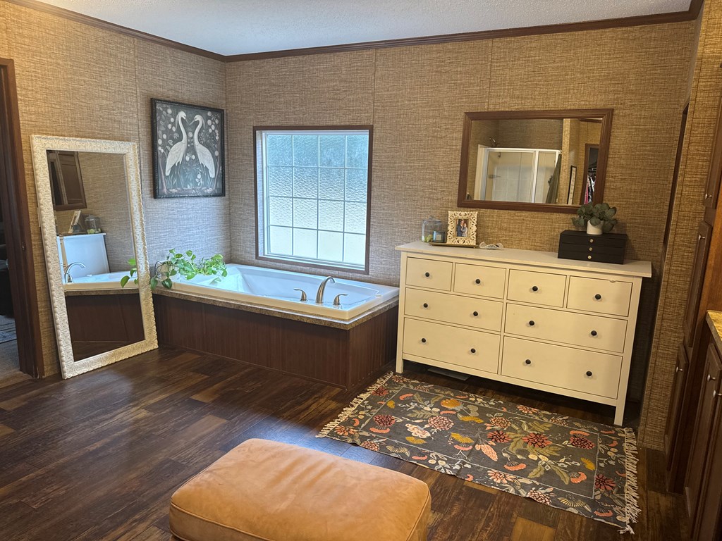 Double Pane Windows, Jetted Tub, Ceiling Fan(s), Miniblinds, Island Kitchen, Woodburning Fireplace