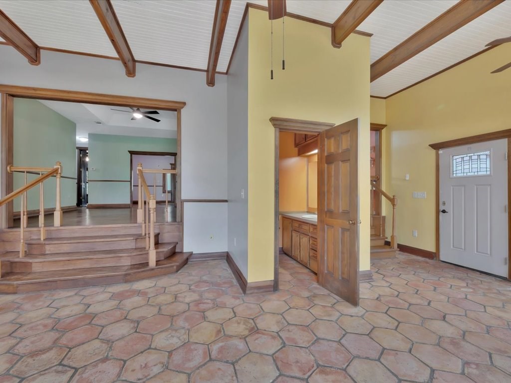 Ceiling Fan(s), Woodburning Fireplace, Blinds