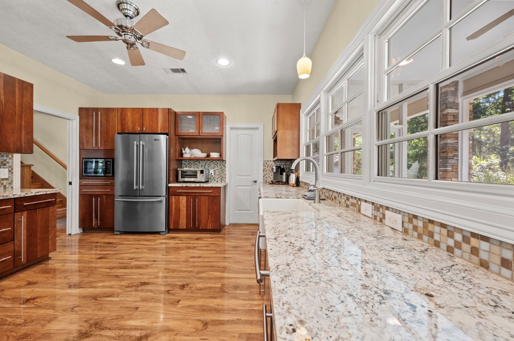 Just listed is this one of a kind southern style plantation home situated on 12+ acres. This dream house is calling your name. This custom built home offers a great family area and open floor plan. The oversize kitchen has a snack bar, tons of space and a beautiful walk in pantry. There is a private office on the main floor and the primary bedroom is located on the lower level with a nice ensuite and closet. Upstairs are two separate bedrooms and an additional space for another office or sewing room. The screened in porch overlooks the property and gardens. There are walking paths and bridged walkways that lead to the pond. A wonderful place for your weekend, your family or your retirement. Call today and lets go take a look.