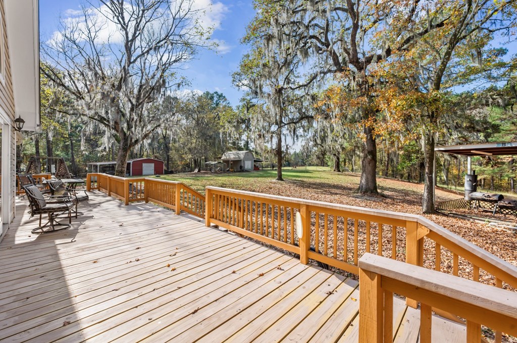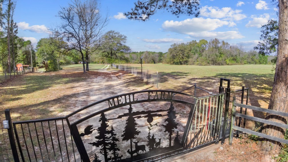 Electric Gate, Deck, Covered Front Porch, Fenced Yard, Workshop, Storage Shed, Metal Building