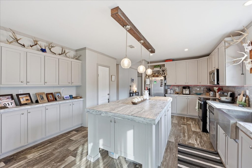 Interior Features Ceiling Fan(s), Island Kitchen, Raised Ceiling, Blinds