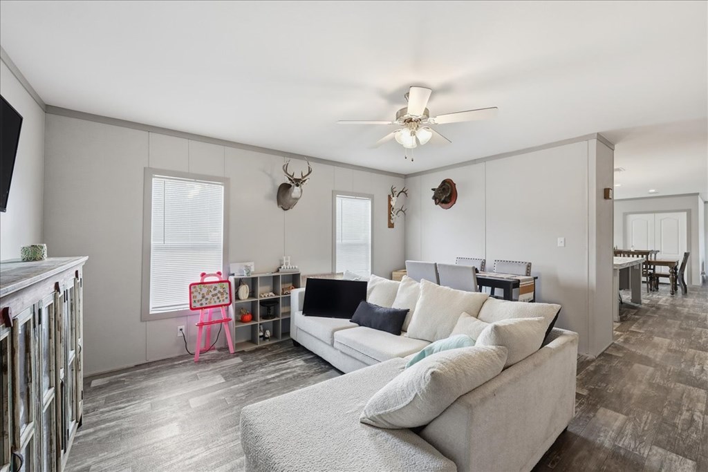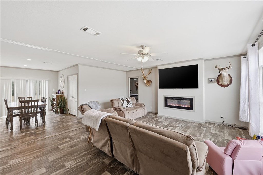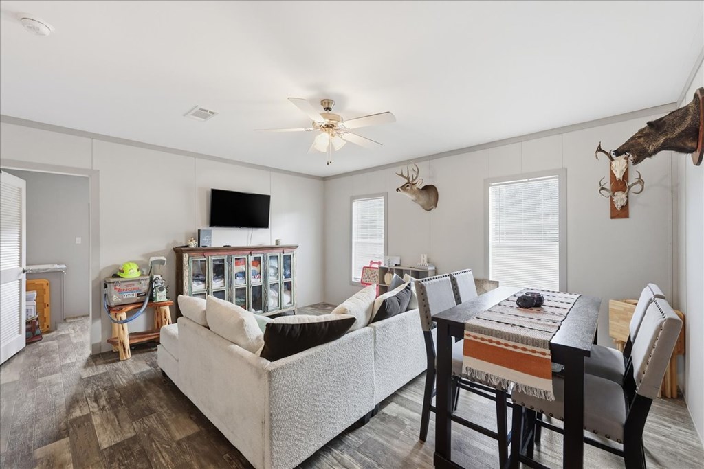 PRICE REDUCED! Spacious home on over 12 acres of partially cleared, partially fenced land making this the perfect retreat for comfort and privacy! Boasting 4 bedrooms and 2 full bathrooms, the home features double sinks in both baths, with the master suite offering a luxurious soaking tub and separate shower. Spanning over 2,400 sq. ft., this residence provides a versatile layout that includes a second living room and a dedicated home office, giving you ample space to relax, work, and enjoy. Don't miss the opportunity to make this move-in ready home with privacy and many possibilities of country living yours!