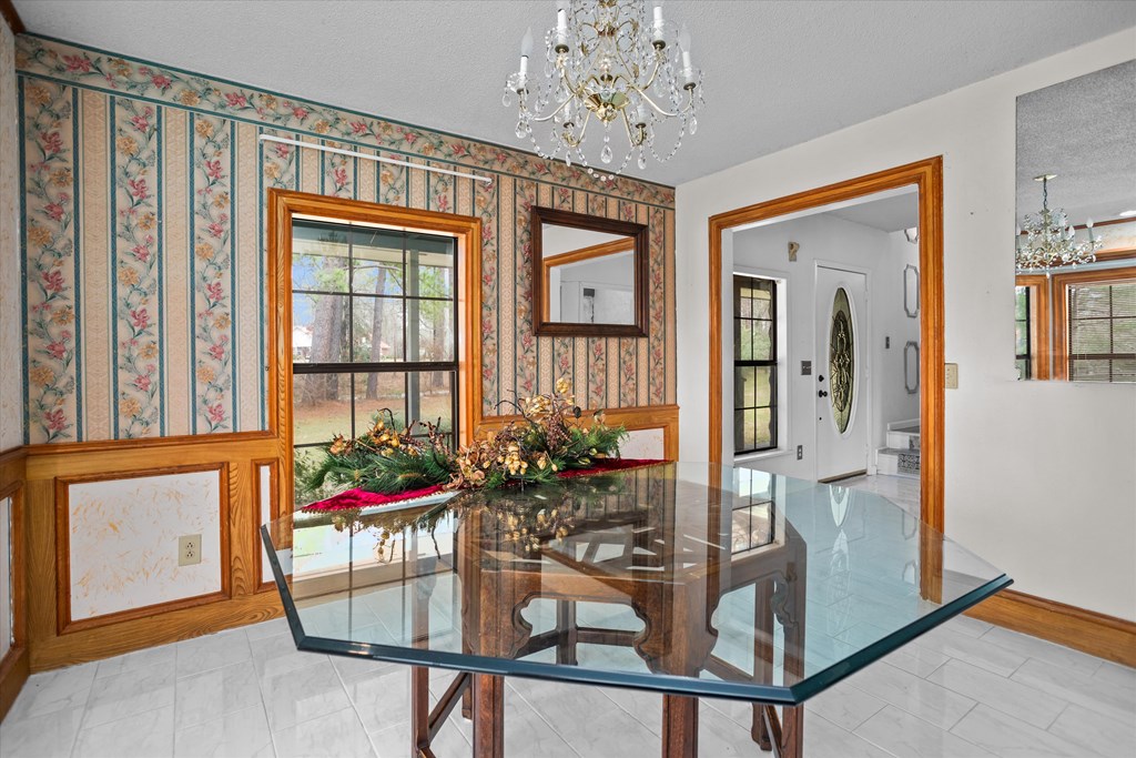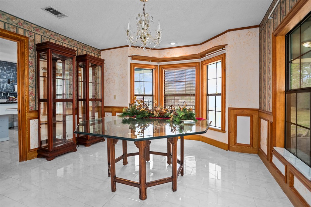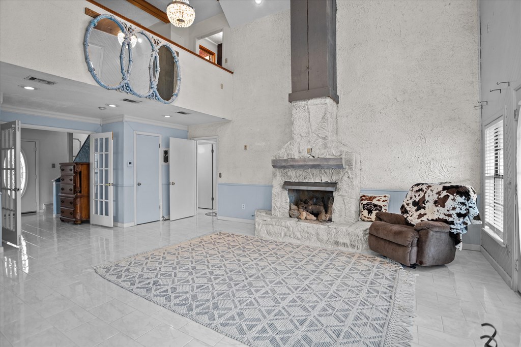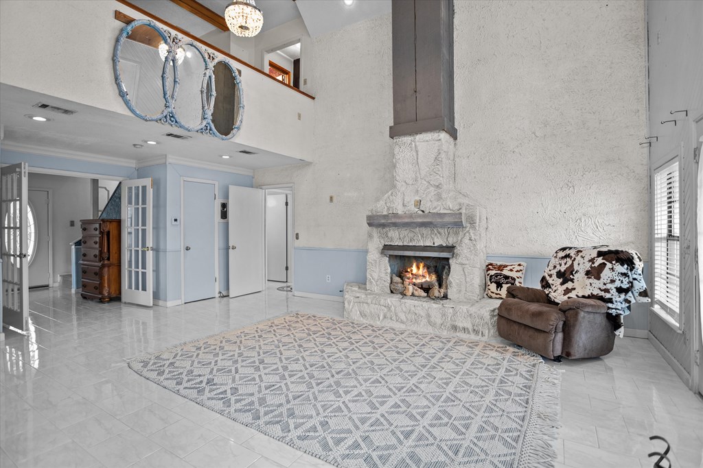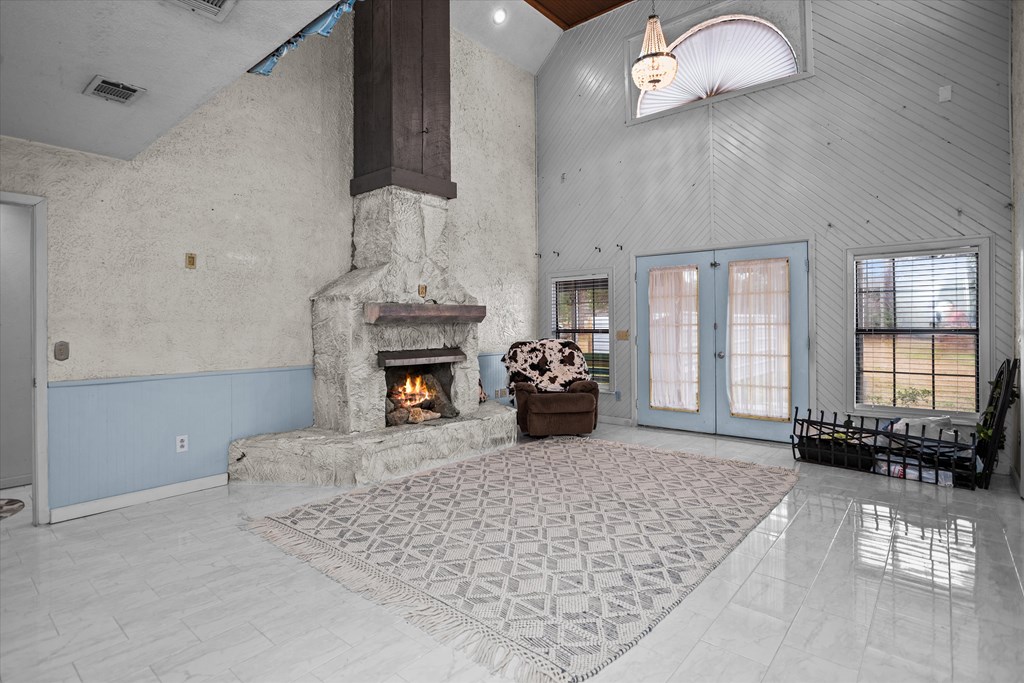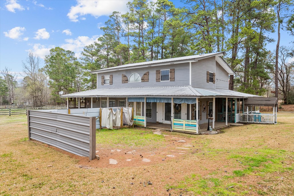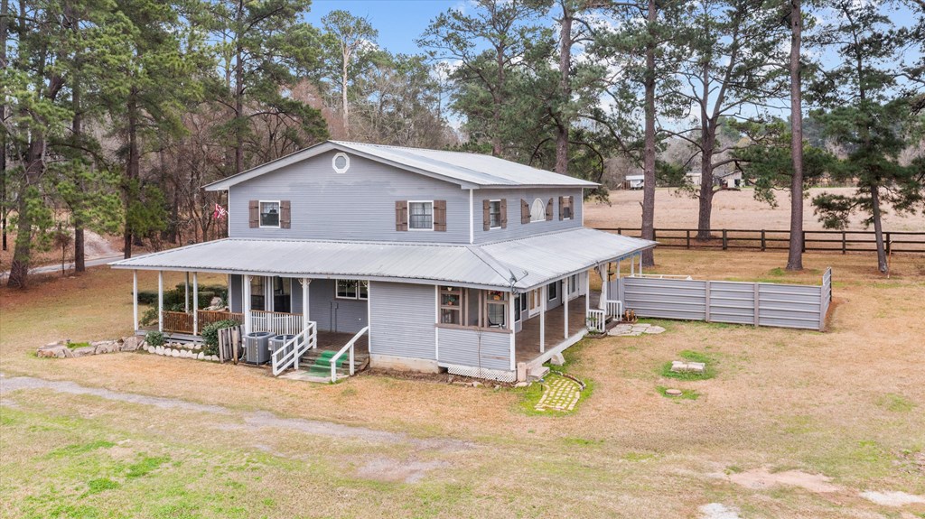 720 Morris St., Diboll, TX — Victorian Charm on 2.45 Acres - Experience the charm of this beautifully maintained ranch-style Victorian home offering 4 bedrooms, 2 bathrooms, and inviting living spaces throughout. A welcoming tiled foyer leads into the spacious living room featuring vaulted ceilings and a striking stone gas fireplace. The large island kitchen opens to both a breakfast area and formal dining room, perfect for everyday living and entertaining. A generous utility room just off the kitchen doubles as a convenient mudroom with exterior access. The main-floor primary suite provides comfort and convenience, while upstairs features a large sitting or entertainment area, three additional bedrooms, and a full bath. Enjoy the outdoors from the wrap-around covered porch, including a screened section ideal for relaxing. Additional Features: 2.45 acres, 3-bay detached garage with apartment (previously rented for $300/month). A unique property offering charm, space, and versatility.