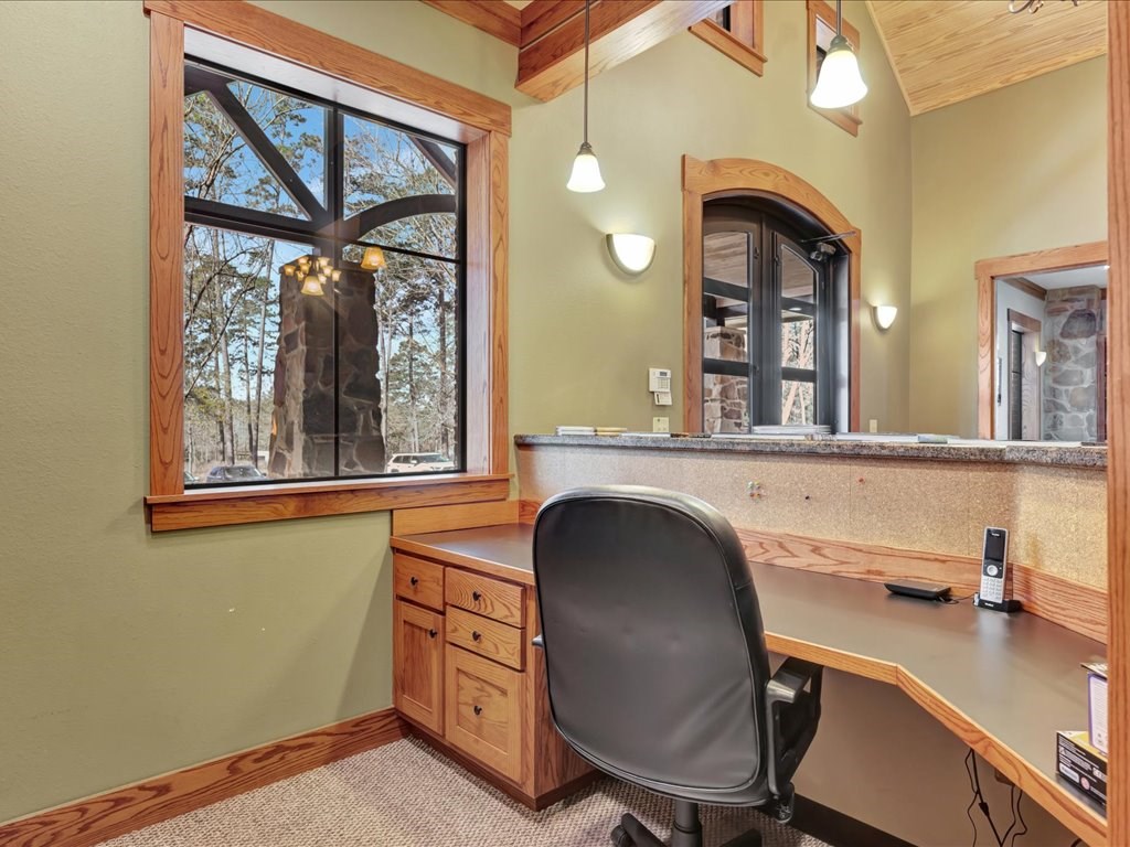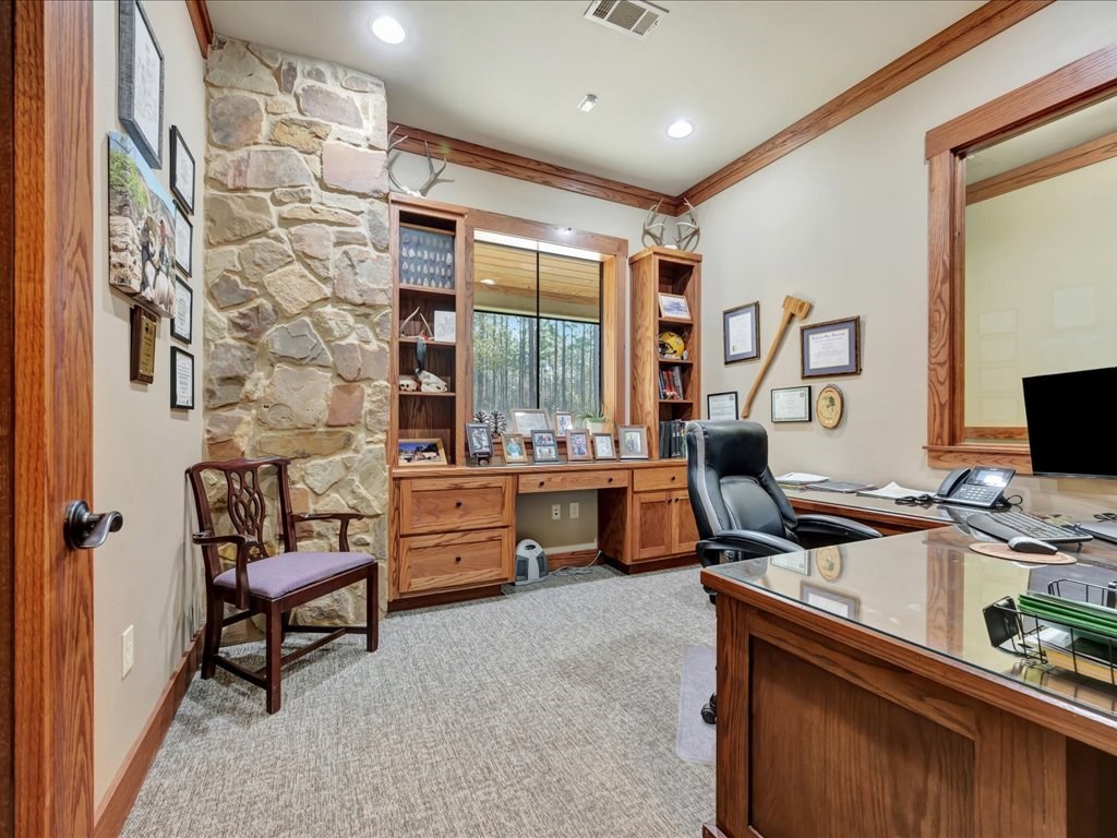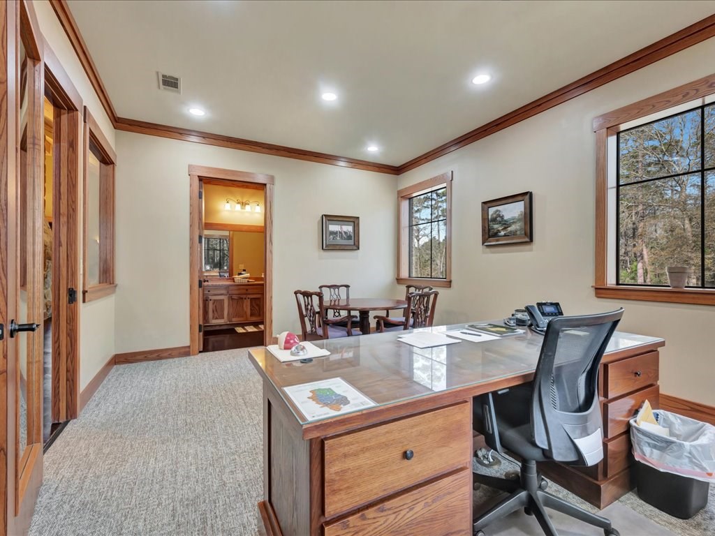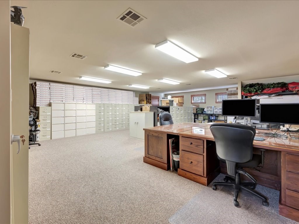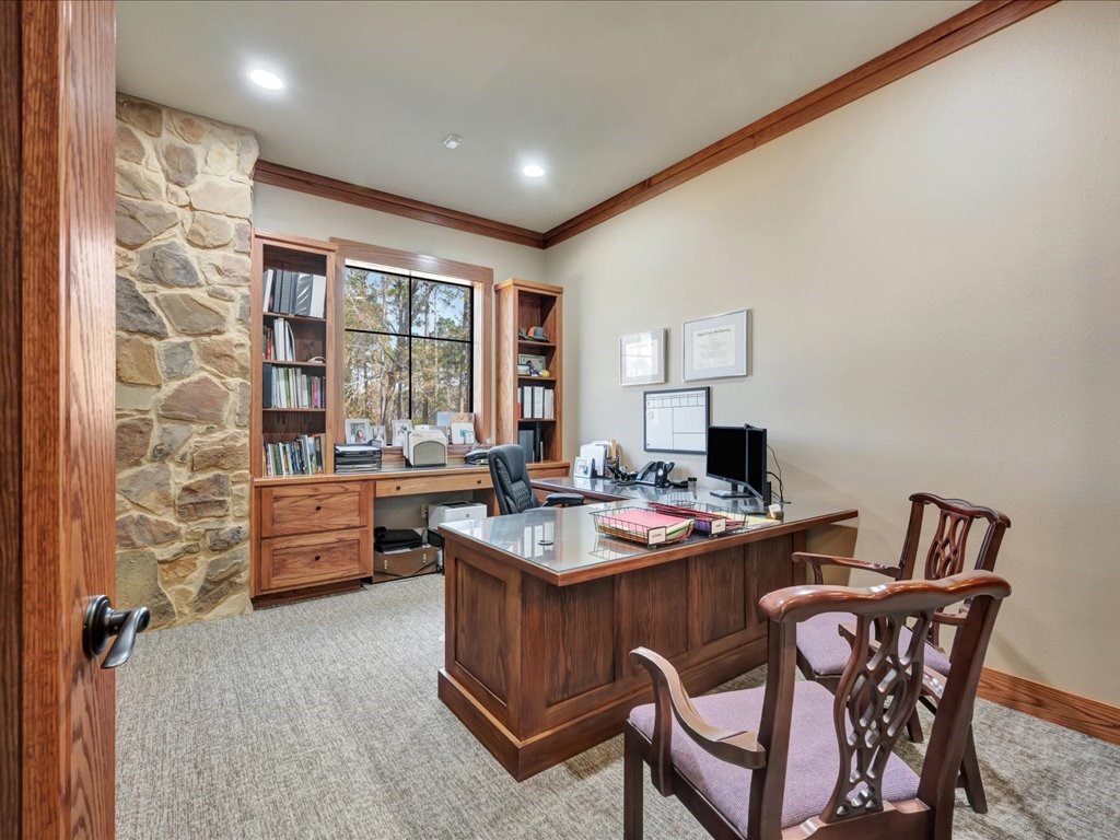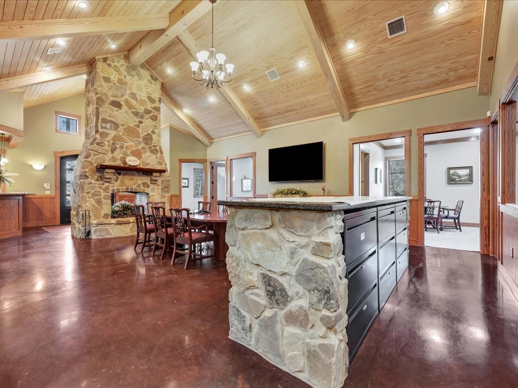 Remarks: Stunning commercial property situated on approximately 15 acres- 4, 839 sq ft brick and stone office building with curb appeal and country tranquility. Thoughtfully designed interior offers a flexible mix of 9 private offices, conference area, reception area, break room with full kitchen and ample storage/IT space. Solid brick-and-stone construction, high ceilings, abundant natural light, and efficient zoned HVAC units. Custom hardwood desks and furniture throughout office will remain. Additional space located upstairs for storage or workspace. Conveniently set off a main road with easy regional access, utilities on site, and strong visibility while retaining privacy. This combination of property does not come around often and is perfect for the growing company. Let's schedule a showing today to explore the possibilities this office and property has to offer.