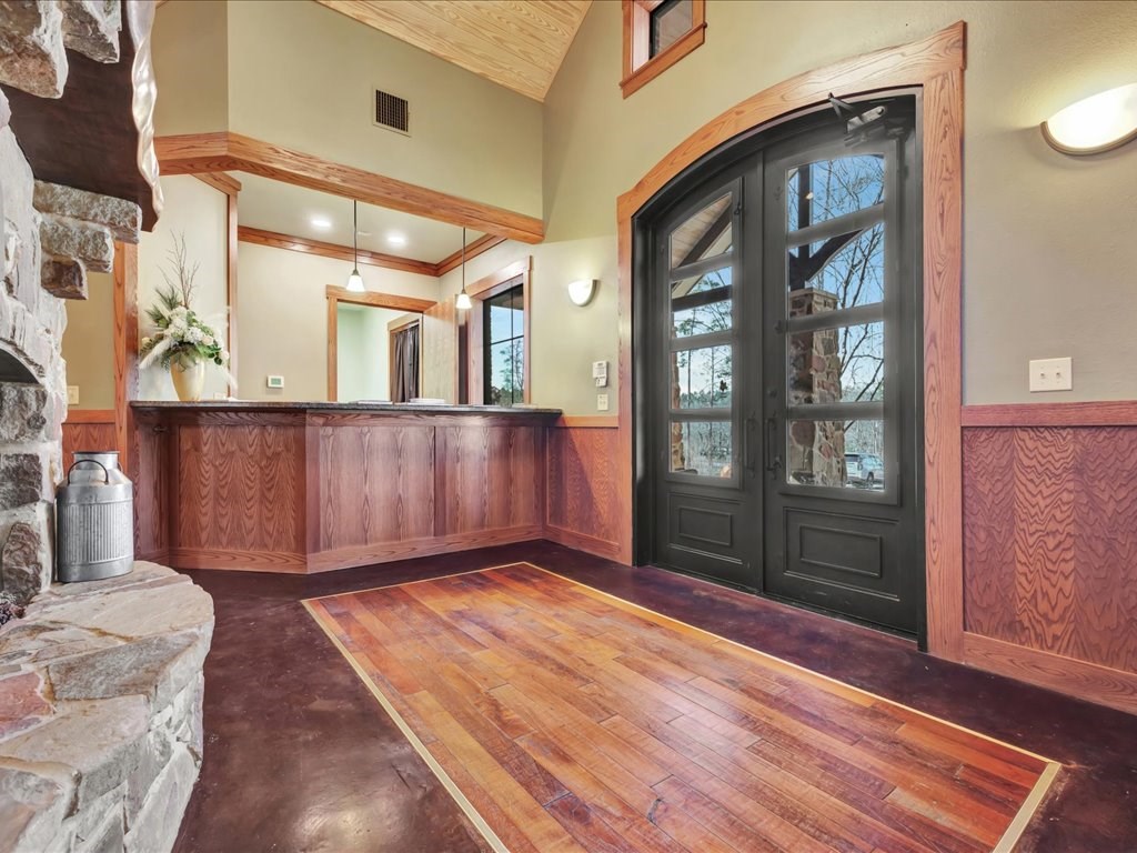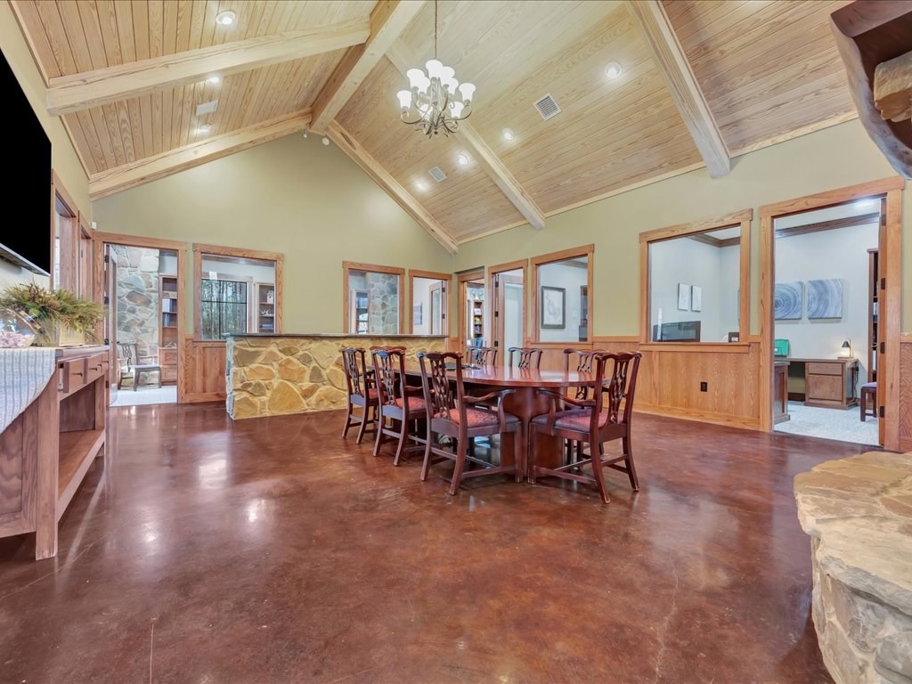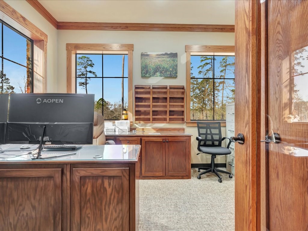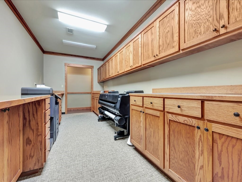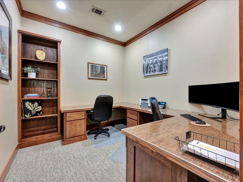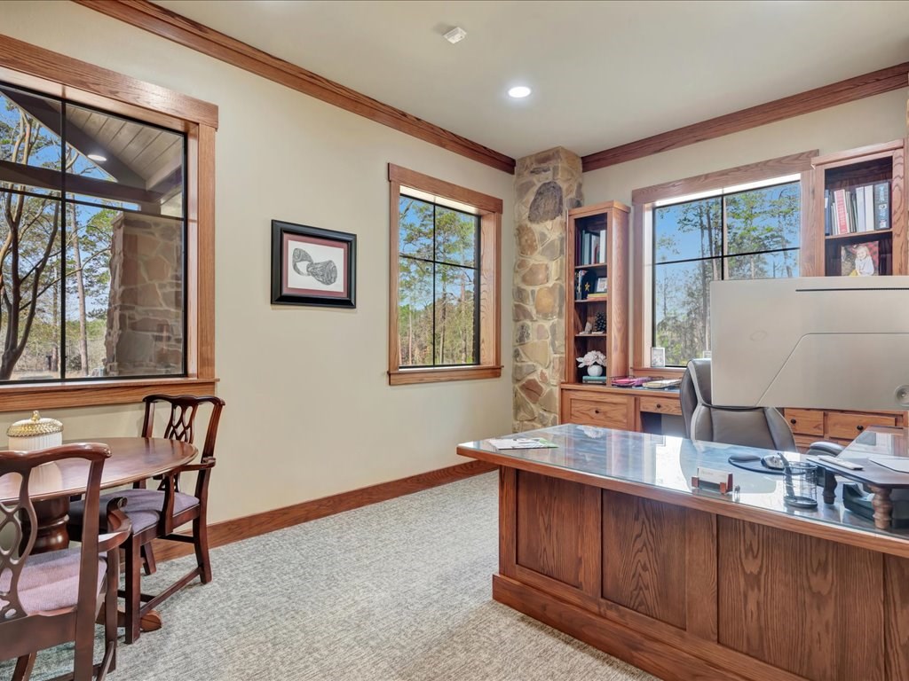 Remarks: Stunning commercial property situated on approximately 15 acres- 4, 839 sq ft brick and stone office building with curb appeal and country tranquility. Thoughtfully designed interior offers a flexible mix of 9 private offices, conference area, reception area, break room with full kitchen and ample storage/IT space. Solid brick-and-stone construction, high ceilings, abundant natural light, and efficient zoned HVAC units. Custom hardwood desks and furniture throughout office will remain. Additional space located upstairs for storage or workspace. Conveniently set off a main road with easy regional access, utilities on site, and strong visibility while retaining privacy. This combination of property does not come around often and is perfect for the growing company. Let's schedule a showing today to explore the possibilities this office and property has to offer.
