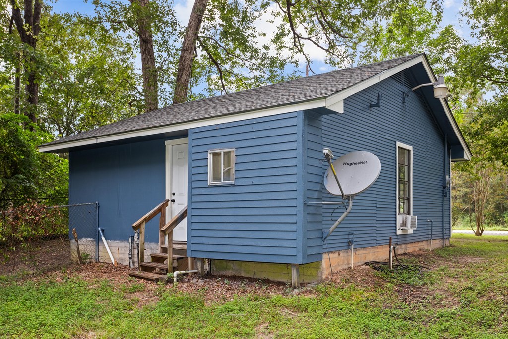 Affordable 1 bedroom, 1 bathroom house on a slab with a new roof and paint on 2 acres!. Double carport with an enclosed space on slab with water, electricity and washer/dryer hookups. There is another metal building with an additional carport. There is a portion of the yard fenced for a dog. Perfect for person who needs a shop for working on cars, welding, etc.