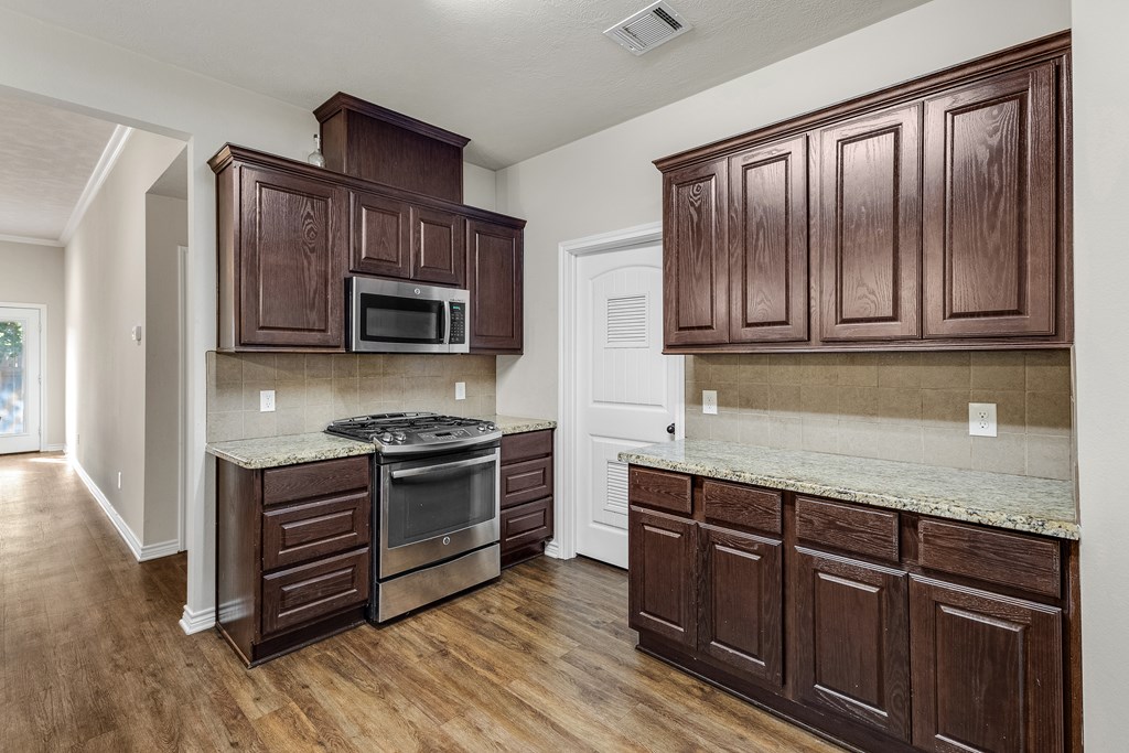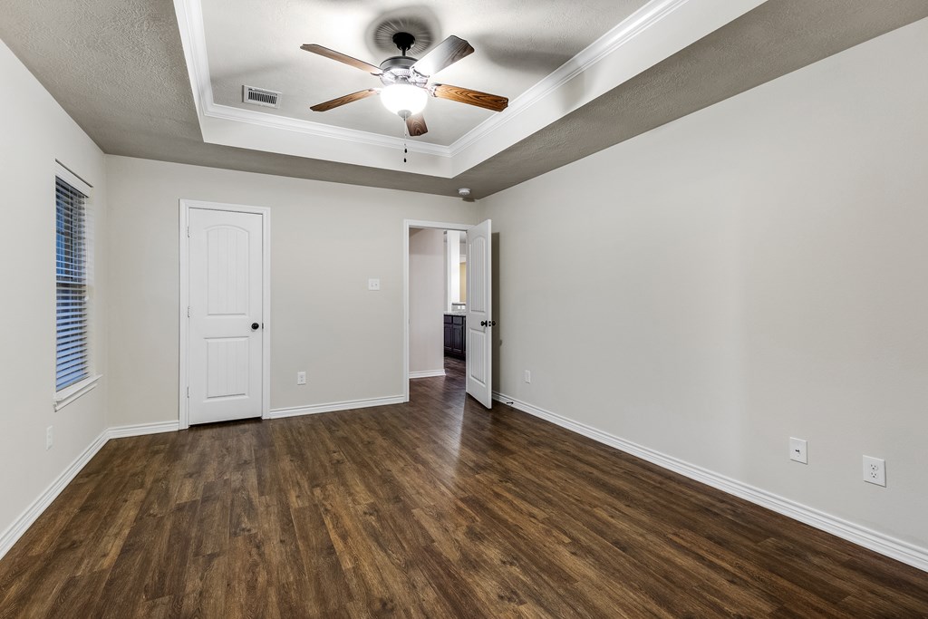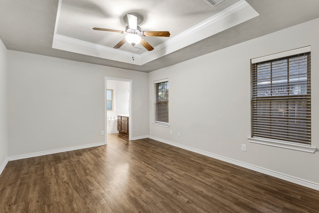 Spacious 5-Bedroom, 3-Bathroom Home in Dove Crossing. Welcome to 801 Dove Run Trail, a beautifully maintained and inviting home nestled in the highly desirable Dove Crossing neighborhood of College Station. This generously sized 5-bedroom, 3-bathroom residence offers 2,371 sq ft of thoughtfully designed living space. Key Features: Versatile Layout: Featuring five full bedrooms and three bathrooms, this home provides flexibility for family living, guest accommodations, or home office setups. Open-Concept Living: The spacious living room flows effortlessly into the dining area and kitchen, making it perfect for entertaining or everyday family life. Private Primary Suite: Tucked away from the other bedrooms, the primary suite includes dual vanities, a soaking tub, separate shower, and a walk-in closet. Outdoor Living: A fully fenced backyard and covered patio create a peaceful space for outdoor meals, play, or relaxing evenings.