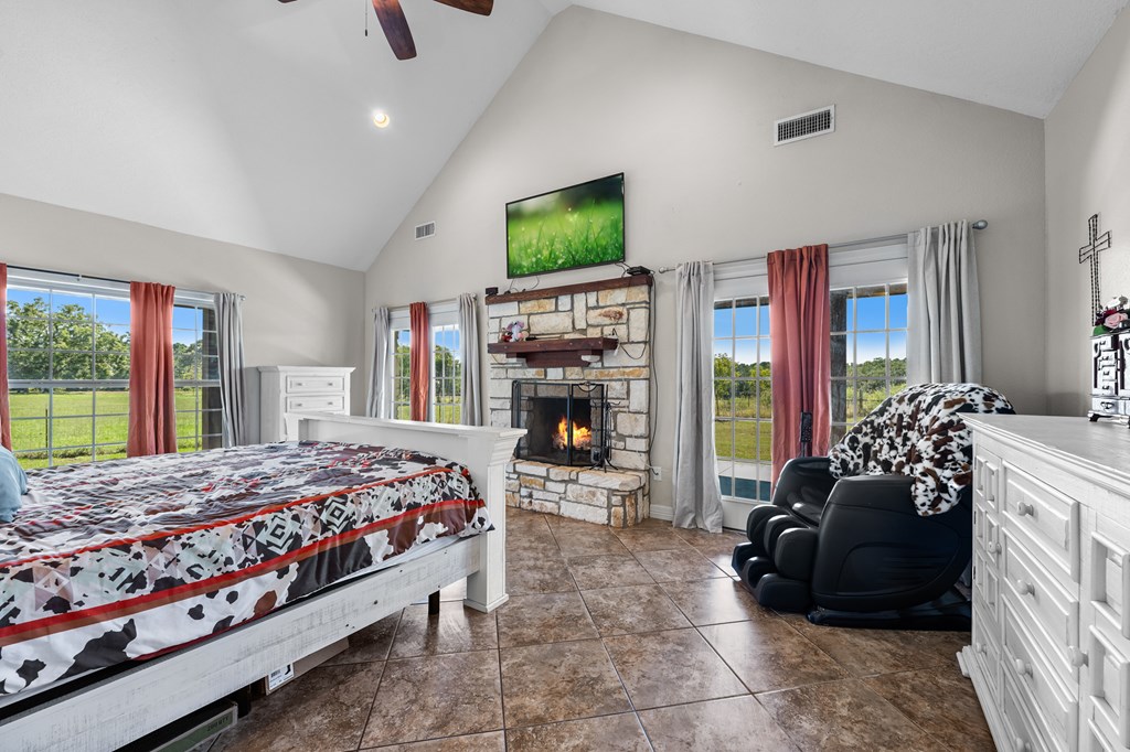Interior Features Double Pane Windows, Ceiling Fan(s), Breakfast Bar, Cathedral Ceilings, Woodburning Fireplace, Gas Fireplace