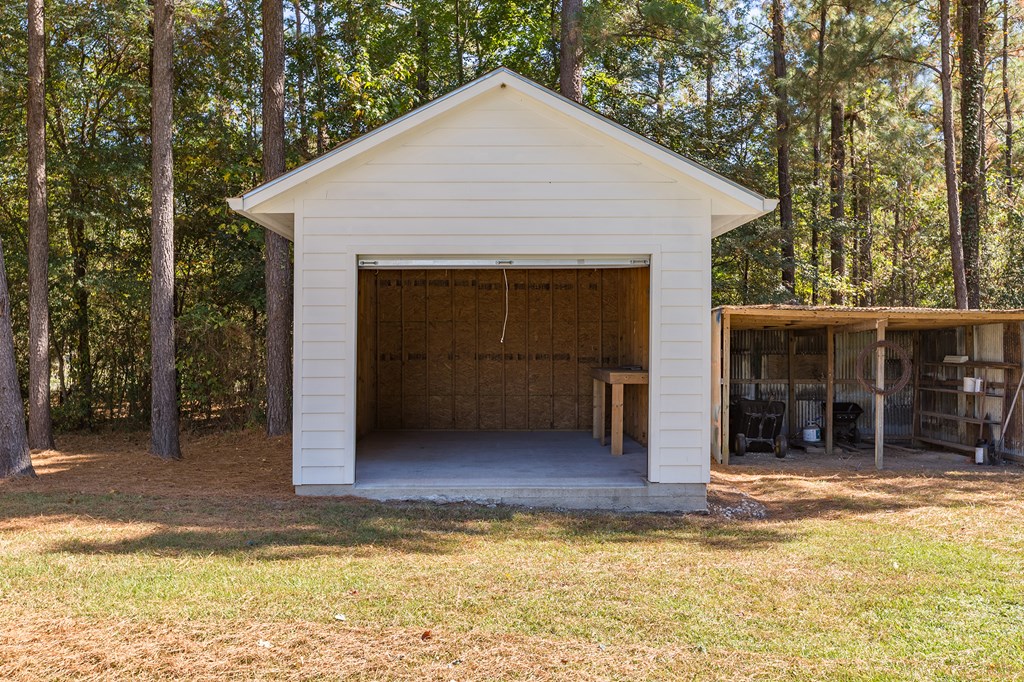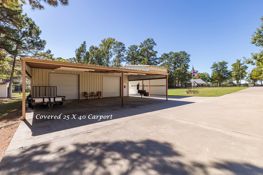 Exterior Features: Sprinkler, Electric Gate, Patio, Covered Patio, Covered Front Porch, Gas Grill, Fenced Yard, Workshop, Storage Shed, Metal Building, Pergola