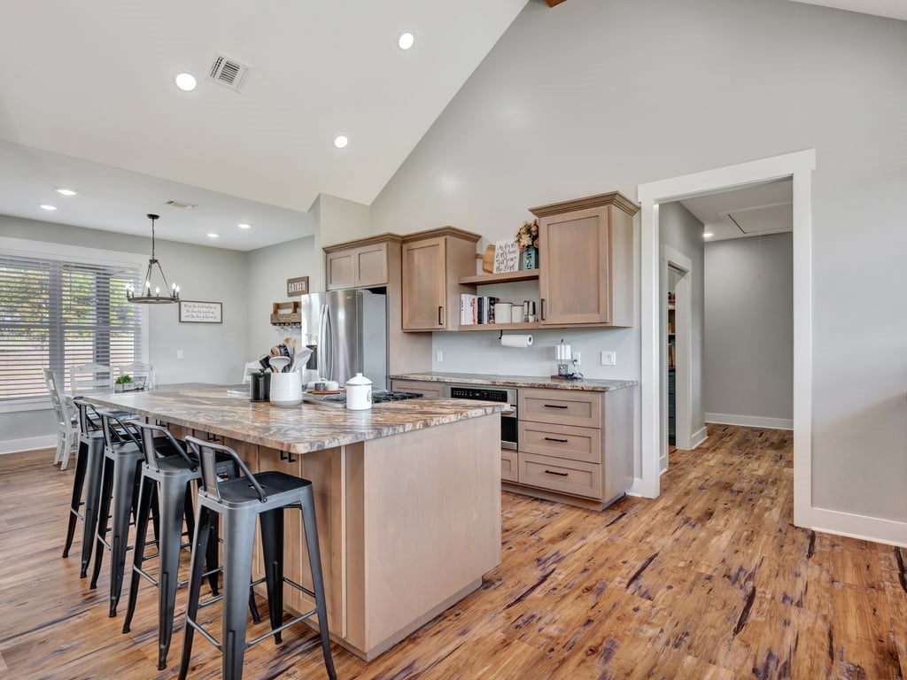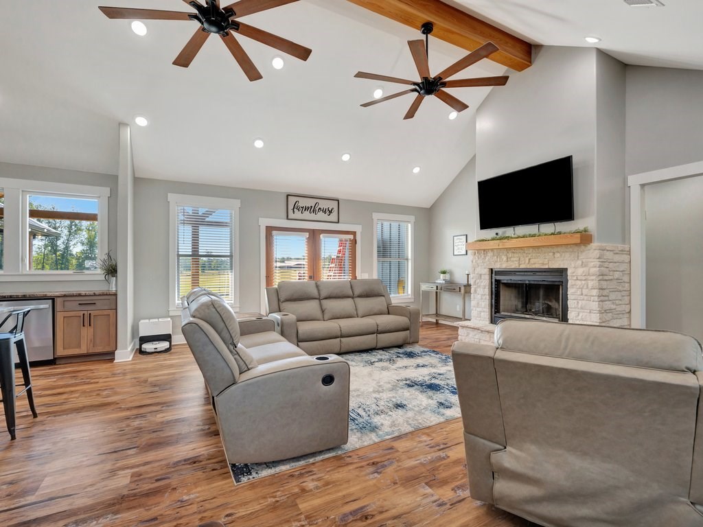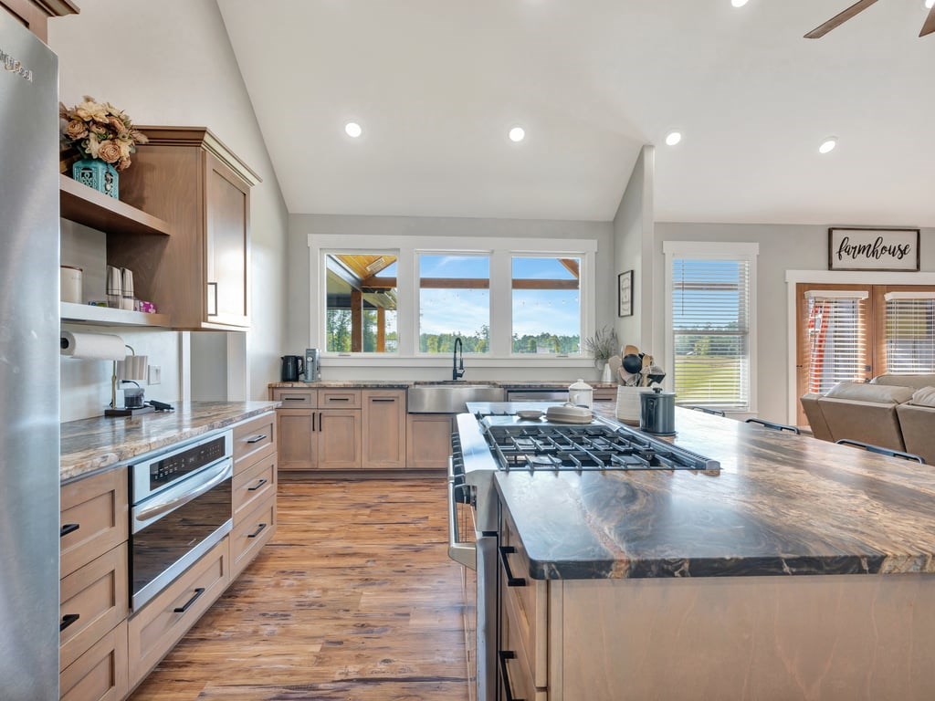 This stunning 4/5 Bedroom 2.5 bath home offers over 2,500 sq. feet of open concept living space designed for comfort and functionality. The large kitchen and living area flow seamlessly together, creating the perfect space for family gatherings or entertaining guests. The massive walk in pantry is perfect for storage and organization. The primary suite features a generous walk in closet with built in drawers and storage galore. Enjoy peaceful country views from the expansive back porch of the 10 beautiful acres. A whole house generator ensures peace of mind year round. This one has it all, space, comfort, and country living at its best.