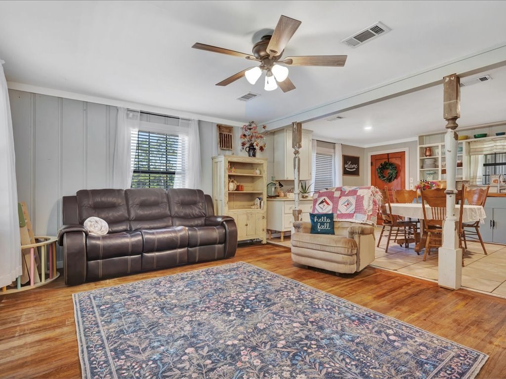 Charming country home with room to roam! Welcome home to this precious country retreat offering the perfect blend of comfort and convenience. Nestled on over half an acre, this 3-bedroom, 2 bath home features a completely fenced yard, covered front and back porches, and plenty of parking under the huge carport. The front porch is ideal for family gatherings or outdoor entertaining. Step inside to discover a large open family room that flows into the bright, functional kitchen. The oversized primary suite provides a peaceful retreat with room for a siting area or home office setup. Guest rooms are great sized and offer ample closet space. Enjoy quiet evenings on the private back porch, or let your pets play safely in the yard featuring a custom, oversized dog kennel. A durable metal roof and country charm throughout make this home a must see for anyone seeking peaceful living close to town.