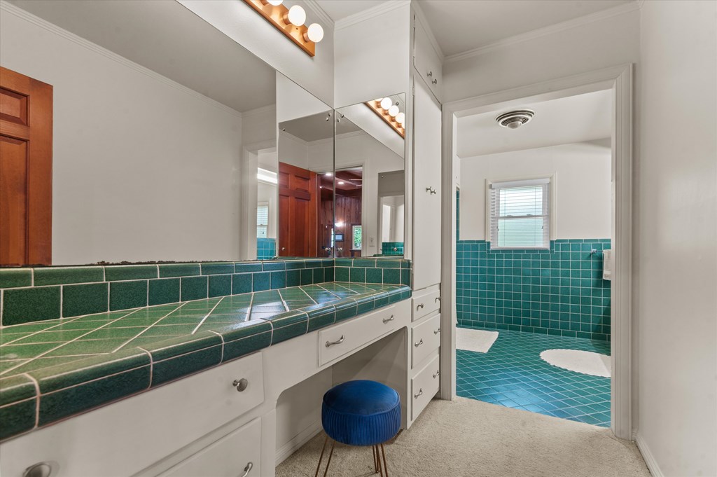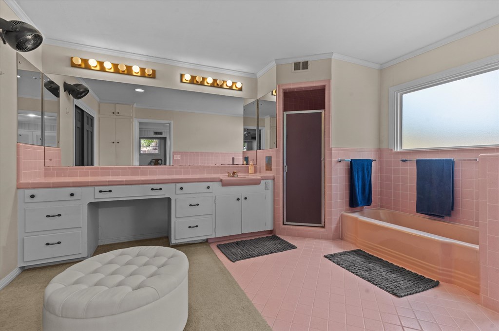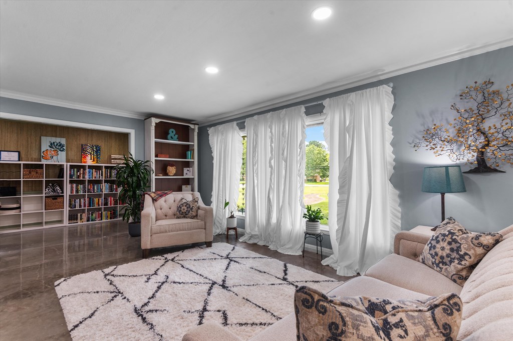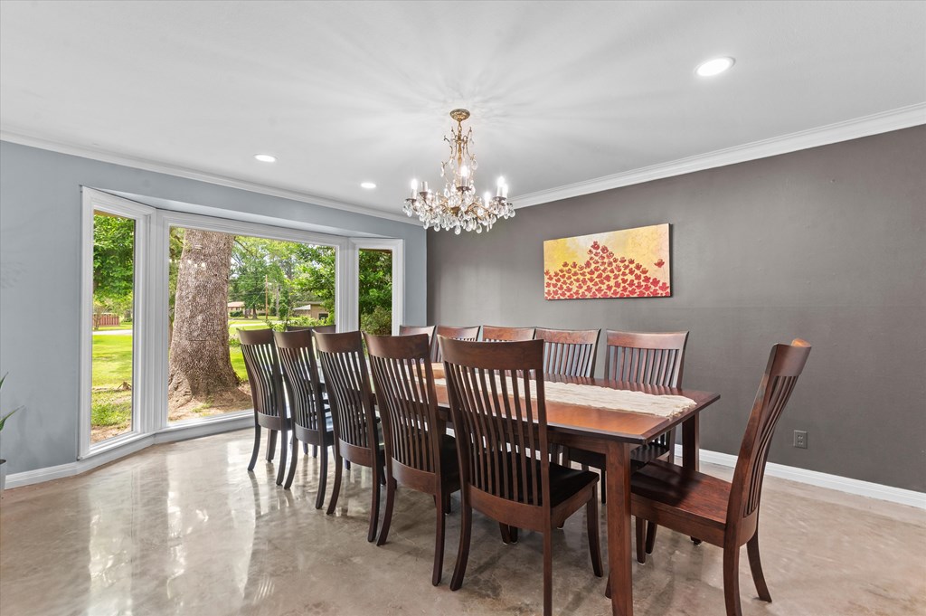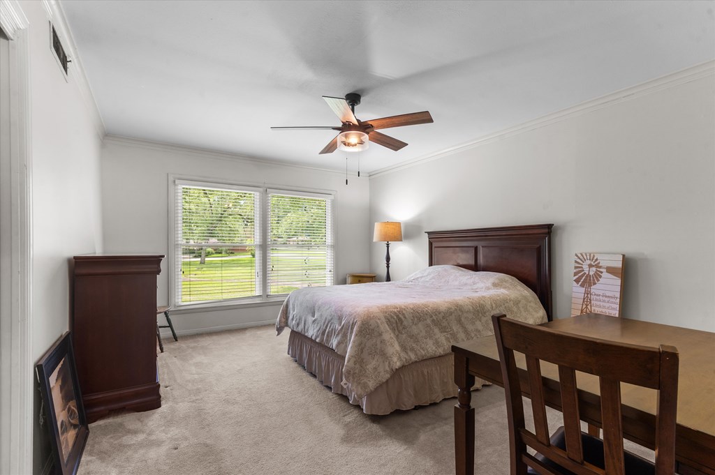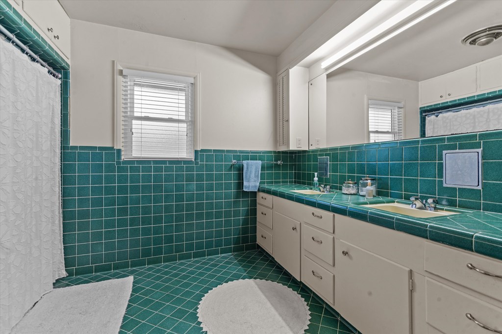 This beautifully maintained mid-century home blends timeless character with thoughtful updates, tucked away at the end of a quiet cul-de-sac on 1.11 acres. A rare combination of space, character, and location - offering an impressive 4,272 sq ft! The home features multiple living areas designed for both entertaining and everyday comfort. The cozy den showcases brick flooring, wood paneling, a wood-burning fireplace, and custom built-ins, while the front living and dining spaces are filled with natural light from large picture windows overlooking mature trees. The oversized kitchen offers double ovens and abundant storage with original built-ins that add to the home's charm. Vintage tiled bathrooms provide a stylish nod to the home's era and a fun opportunity for personal design touches. Recent improvements include new energy-efficient windows, fresh interior paint, updated lighting & ceiling fans, and an enhanced circular driveway with improved drainage.