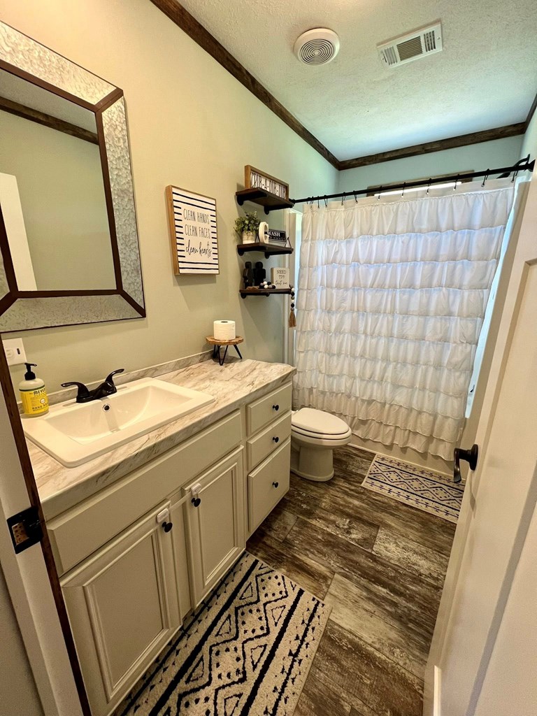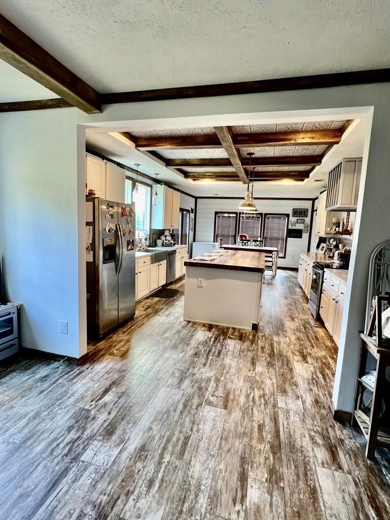 Mobile home & porch only — land not included! Beautiful 3-Bedroom, 2-Bath 2021 Mobile Home with Farmhouse Charm featuring a modern farmhouse interior and thoughtfully designed layout. Enjoy cooking and entertaining in the stunning kitchen, complete with an oversized island work center with breakfast bar, stainless steel appliances, and a butler's pantry for added storage and prep space. The open living area includes an electric fireplace for cozy nights and a warm, inviting atmosphere. Retreat to the luxurious primary suite with a large soaking tub, oversized walk-in shower, and double vanity. Each bedroom includes a walk-in closet, offering plenty of space for storage and organization. Additional features include an inside utility room, large rooms throughout, and a generously sized covered porch—perfect for relaxing or entertaining outdoors. Don't miss this opportunity to own a beautifully maintained home with all the modern farmhouse features you've been looking for!
