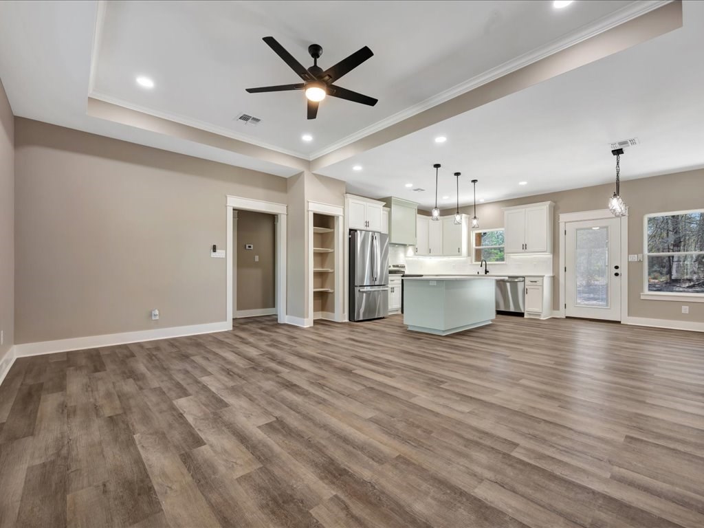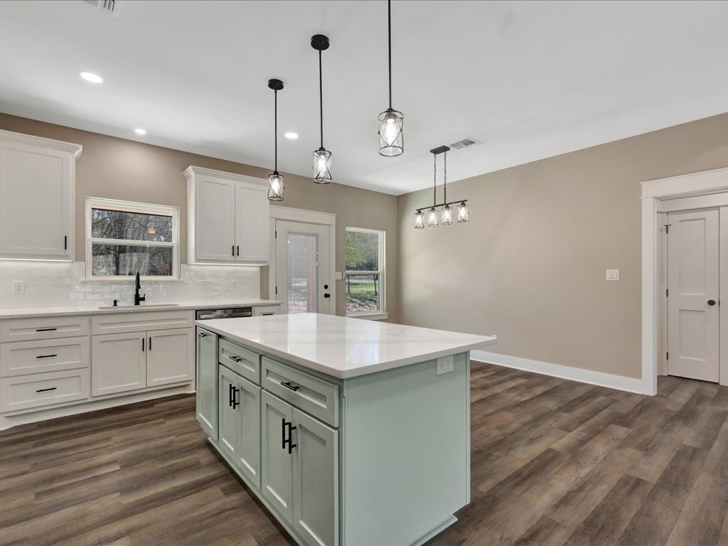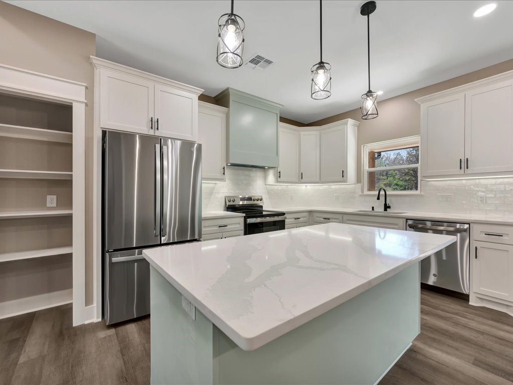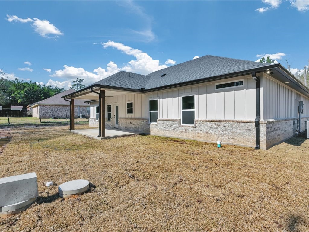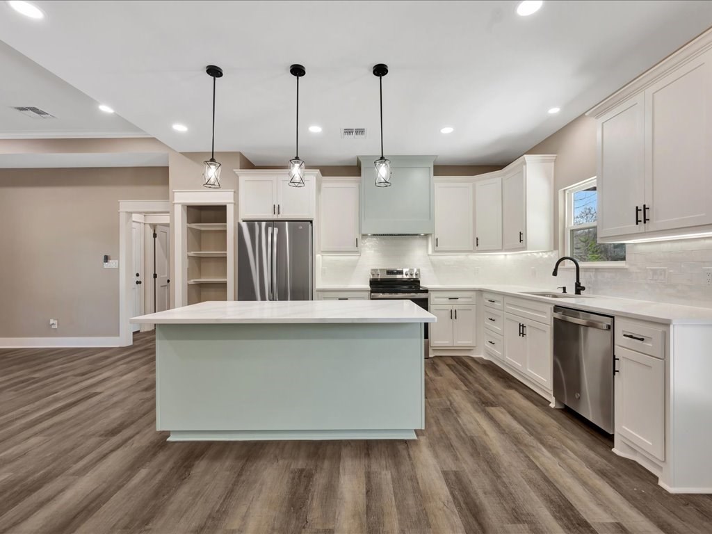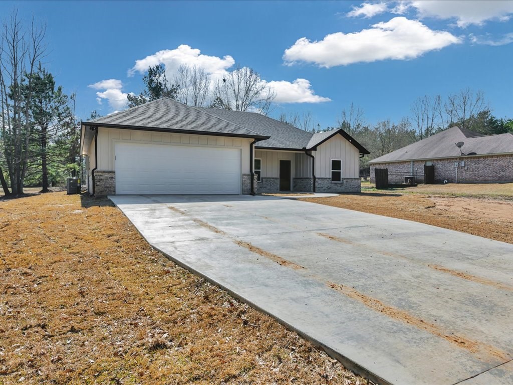 Welcome to this beautifully crafted 3 bed, 2 bath home just minutes from Lufkin, TX. From the inviting covered front entry to the modern interior finishes, this home blends comfort and style effortlessly. Inside, you'll find an open-concept living, kitchen, and dining area filled with natural light. The kitchen features crisp cabinetry, stainless steel appliances, an island with seating, and quartz countertops—perfect for everyday living and entertaining. Luxury vinyl plank flooring flows throughout the main living areas for durability and easy maintenance. The private primary suite includes a beautifully finished ensuite bath with a walk-in tiled shower and a sizable closet. Two additional bedrooms offer flexibility for guests, a home office, or hobbies. Featuring spray foam insulation and a smart thermostat, this home was mindfully crafted for energy efficiency. Step outside and enjoy the spacious lot, ideal for outdoor gatherings, gardening, or simply soaking in the surroundings.